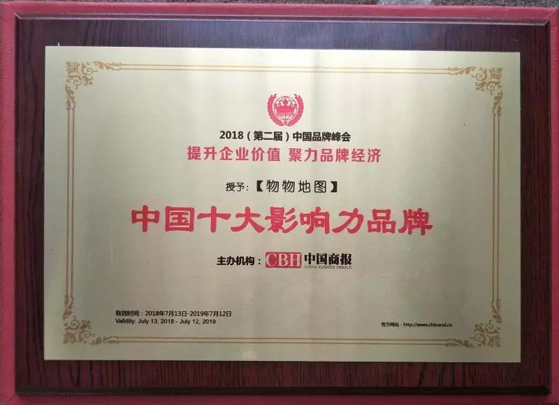 新榮譽(yù) 新鞭策 新起點(diǎn) --祝賀【物物地圖】榮獲“2018中國十大影響力品牌”